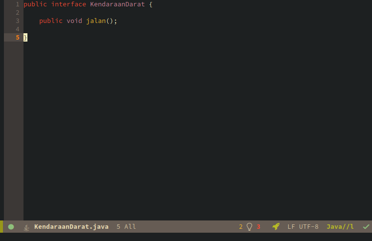 Ingat bahwa method yang dideklarasikan di interface merupakan abstract method dan kita harus membuat method tersebut di class contrete yang ada.