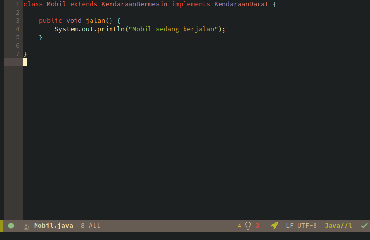 class Mobil extends KendaraanBermesin implements KendaraanDarat {