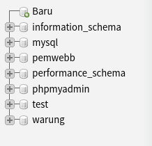 Disini saya misalkan akan memakai database pemwebb. Kita akan membuat databasenya nanti.