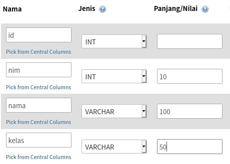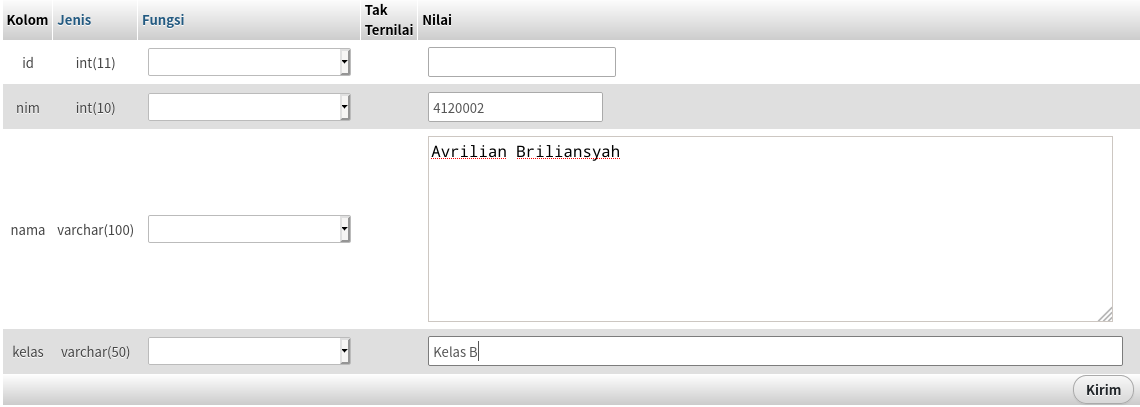 Disini saya menggunakan table tablesiswa yang ada di database.